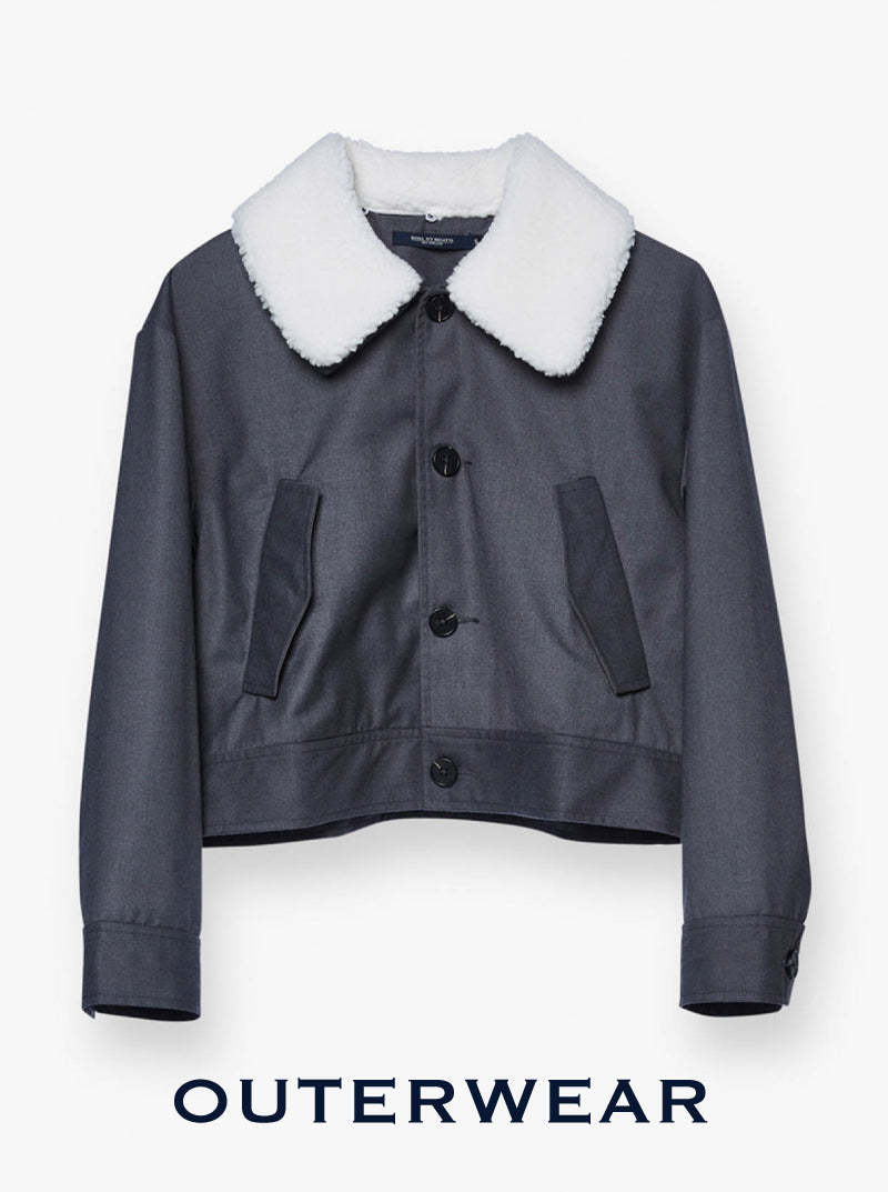 CROPPED FAUX FUR COLLAR JACKET Grey / XL