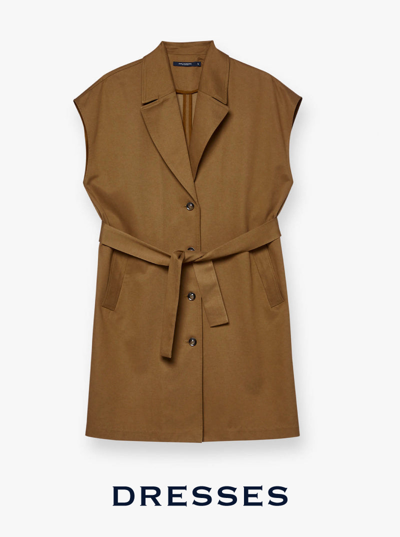 SLEEVELESS TRENCH MIDI DRESS Brown / XL