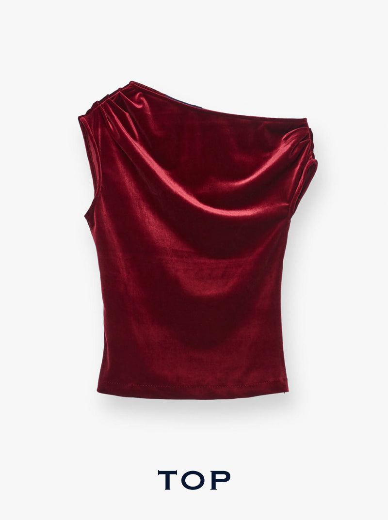 VELVET ASYMMETRIC SHOULDER TOP Red / XL