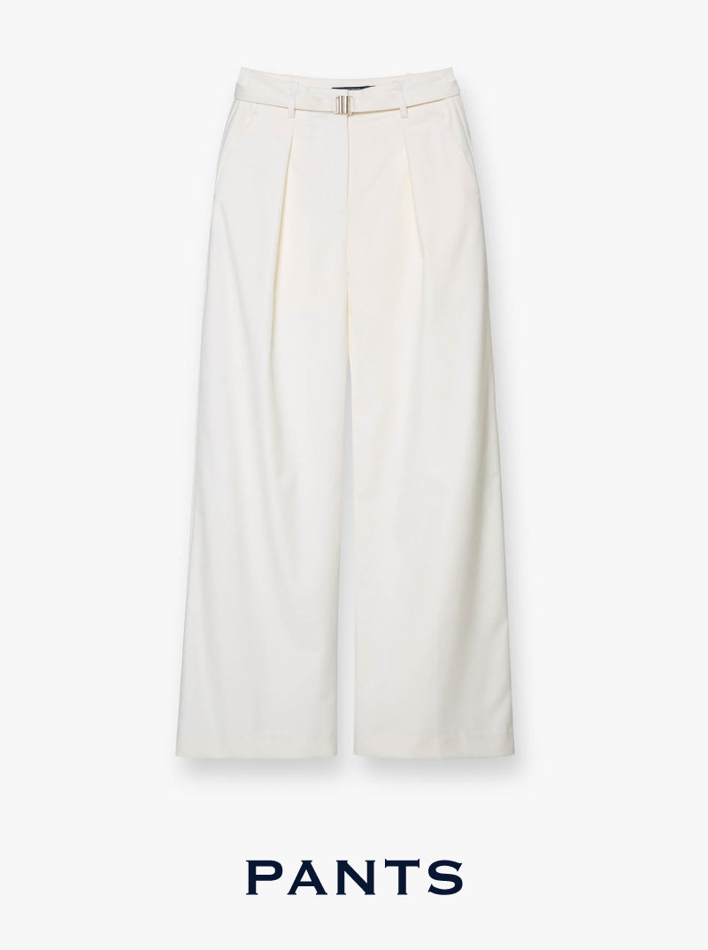 WIDE LEG PANTS WITH METAL BUCKLE Navy / XL