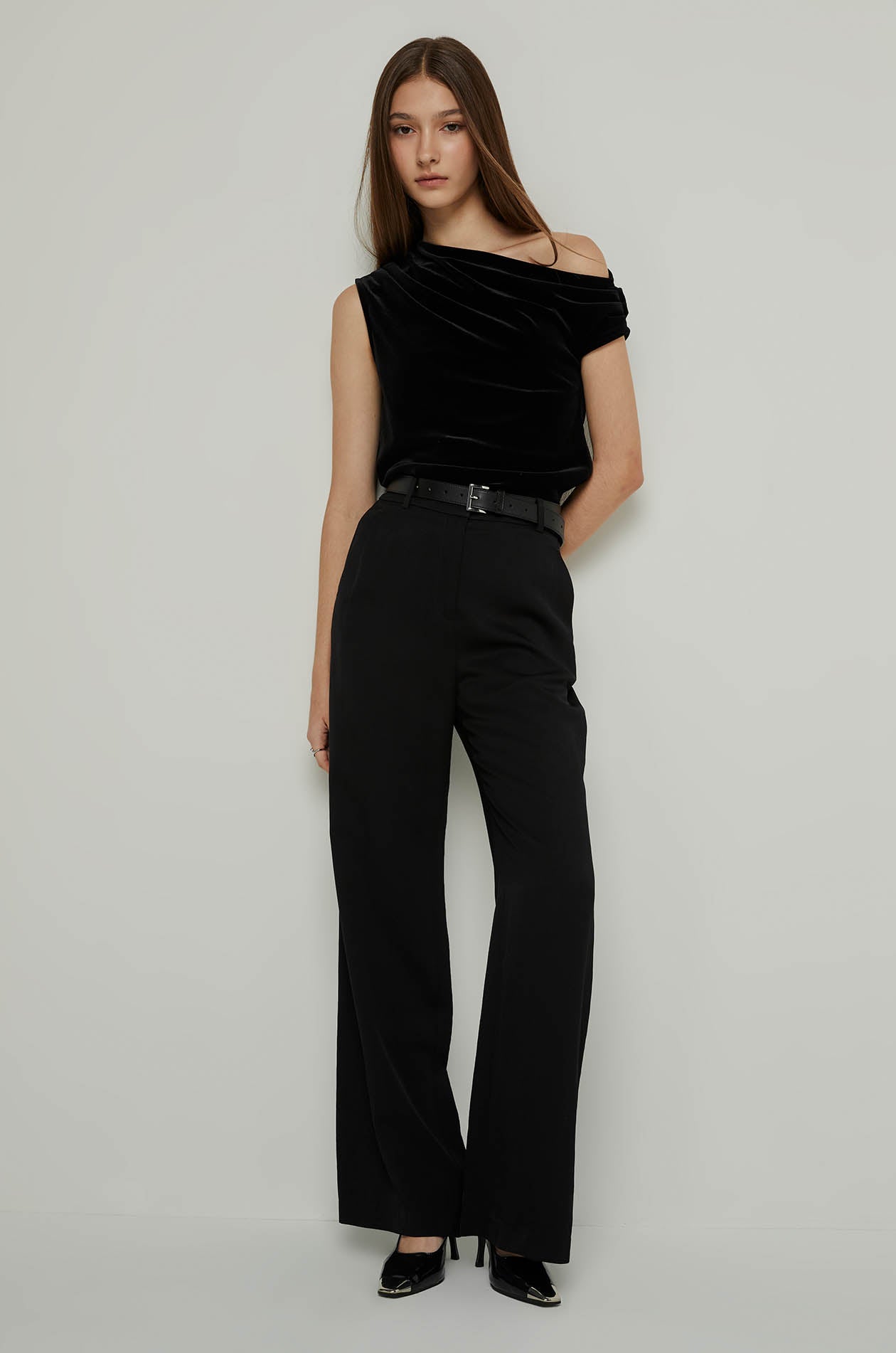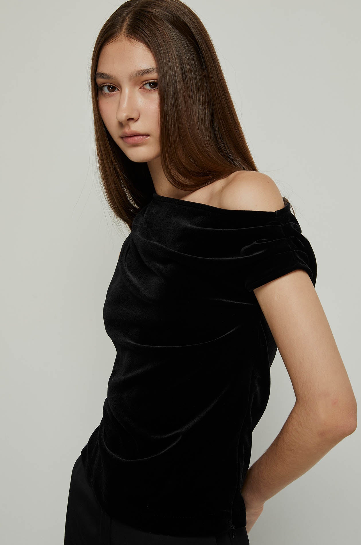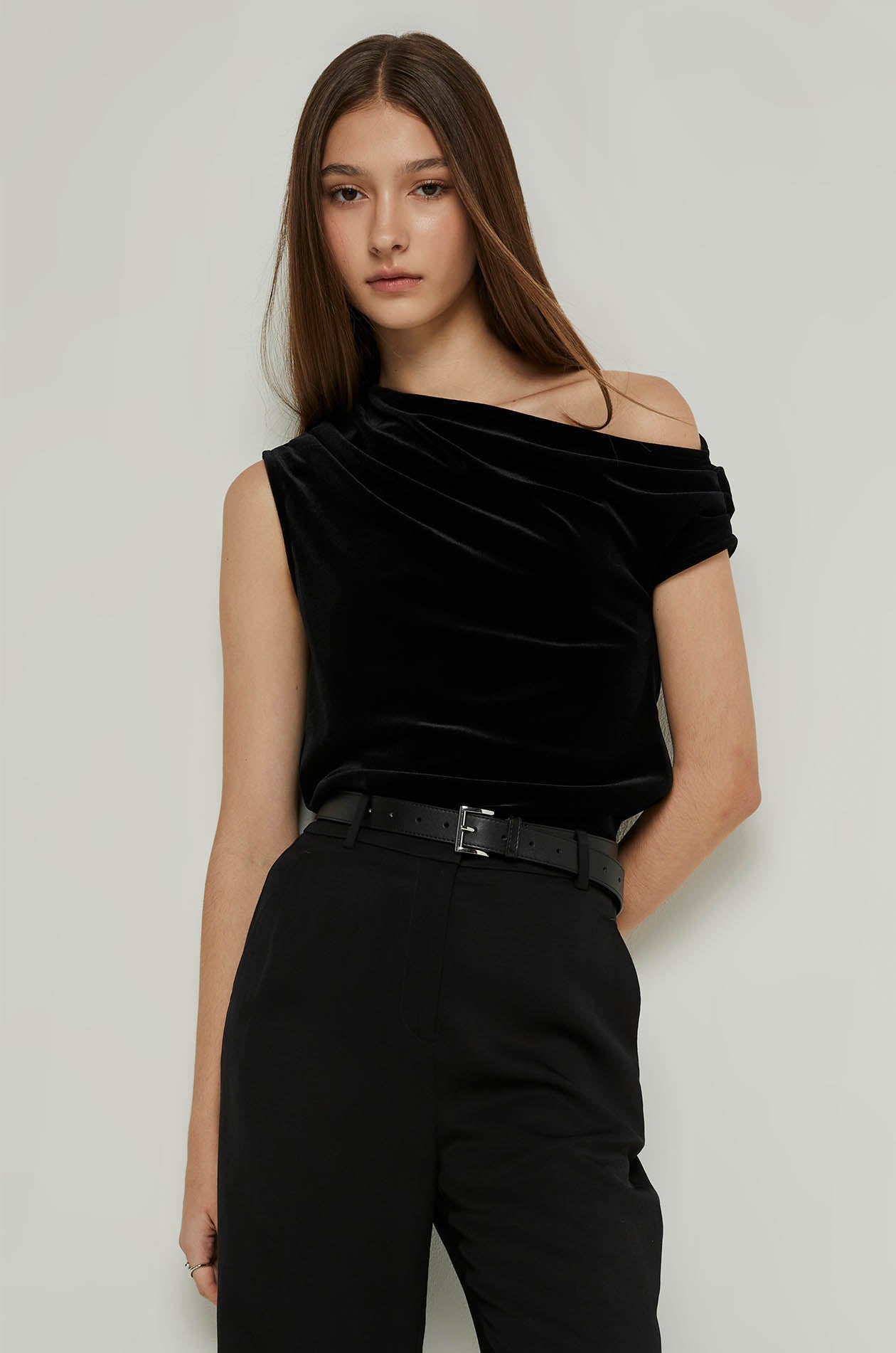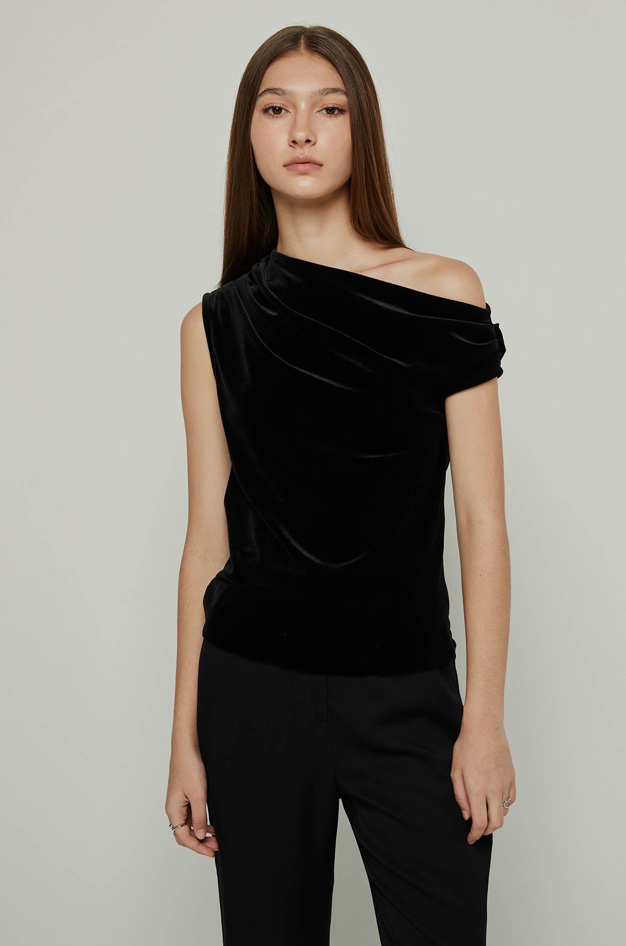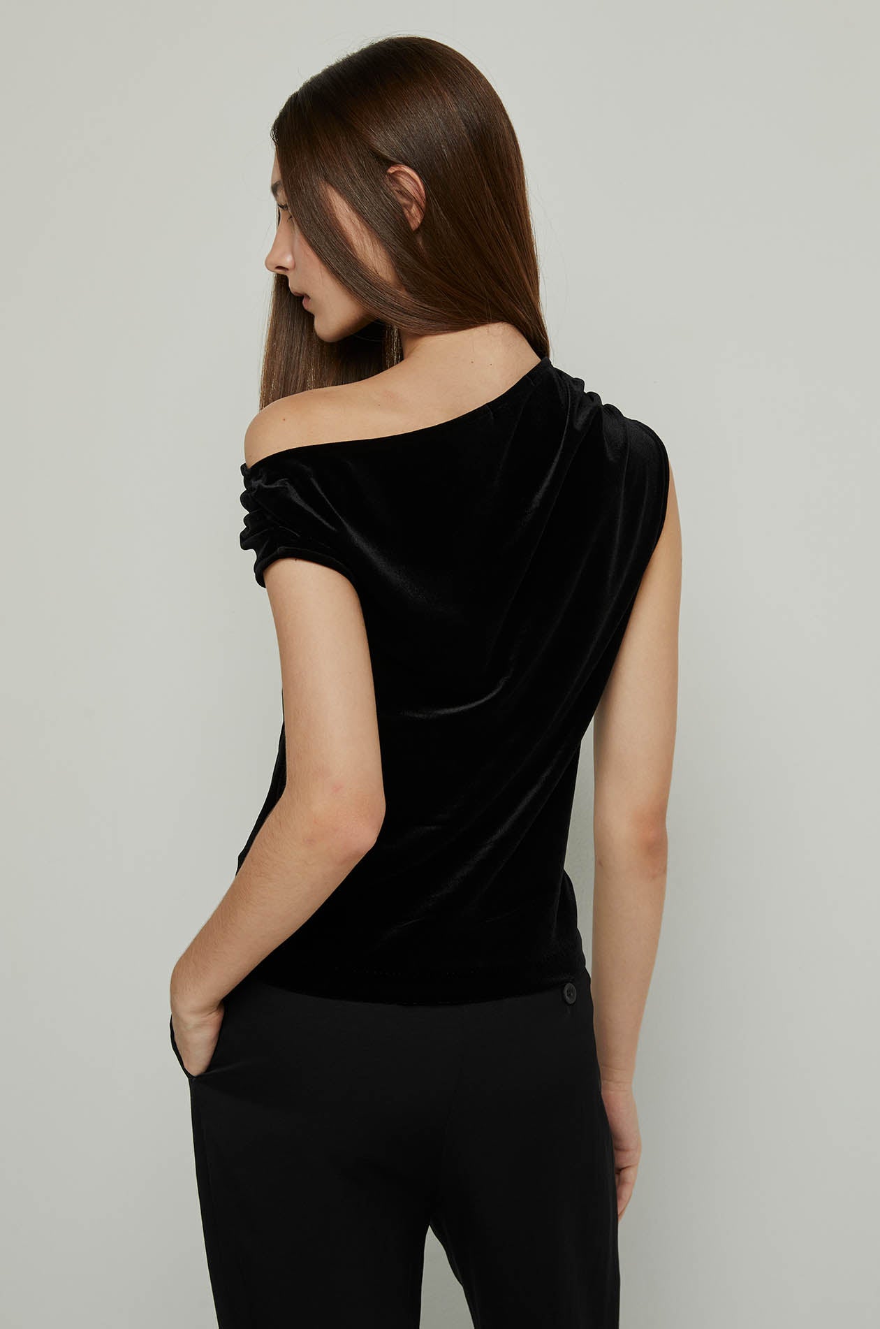 VELVET ASYMMETRIC SHOULDER TOP