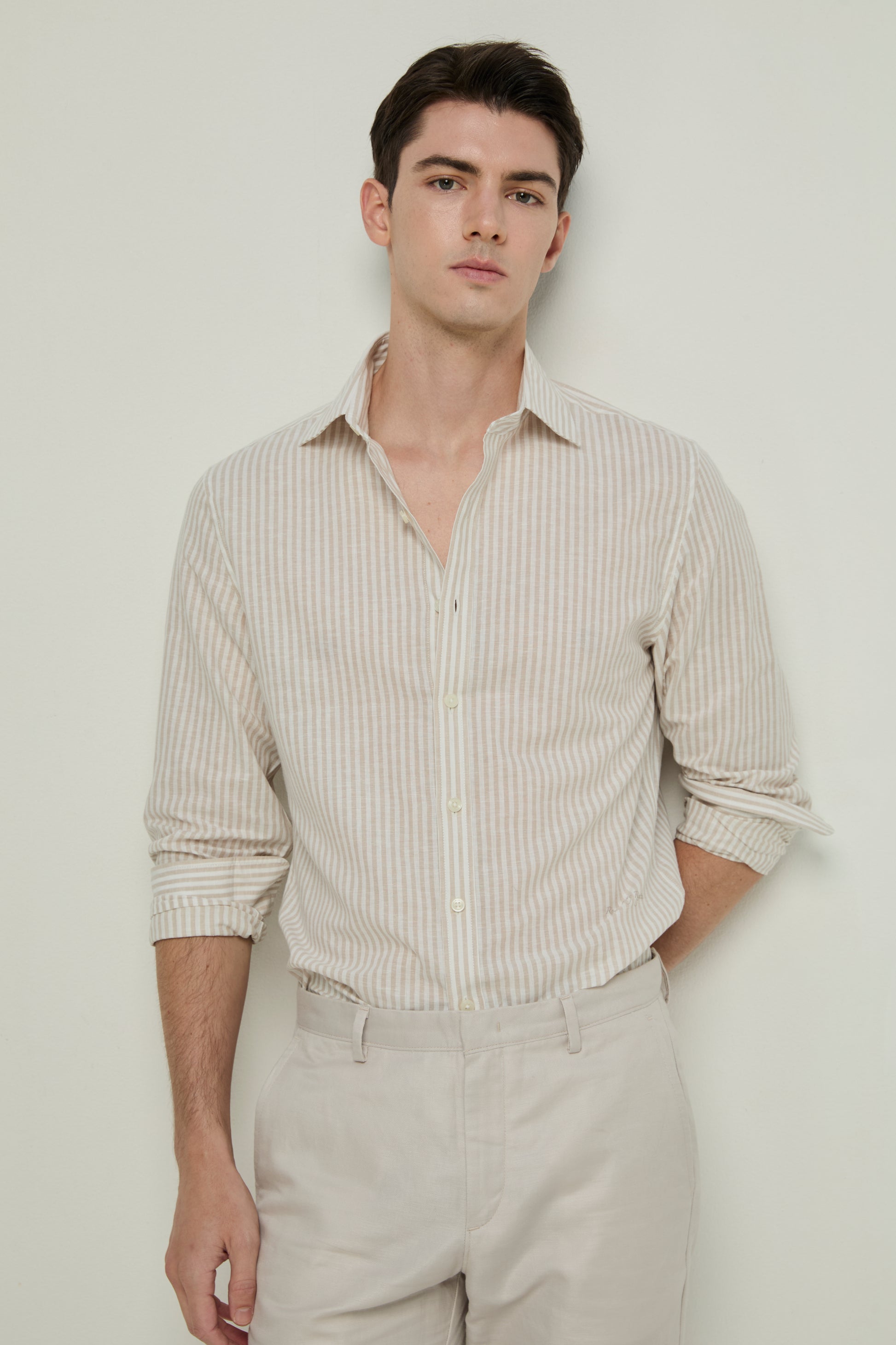 BEIGE STRIPED LONG-SLEEVE SHIRT