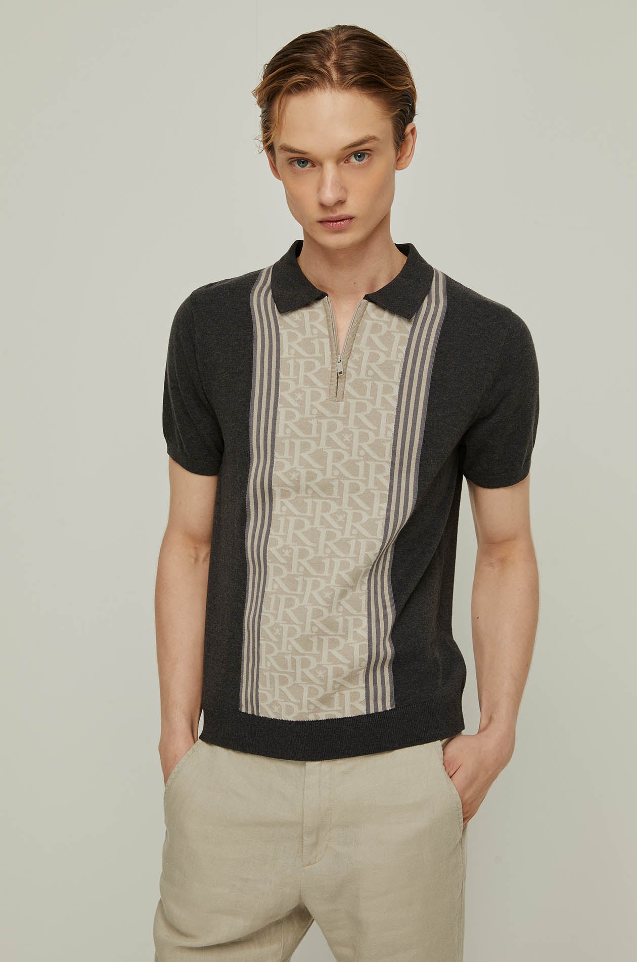 RIR MONOGRAM PANEL KNITTED POLO