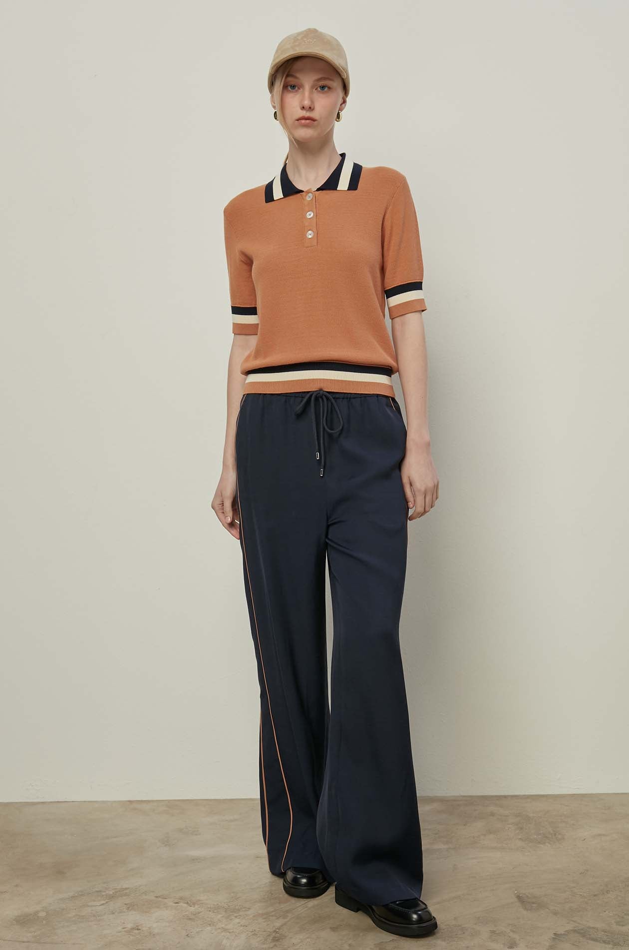 DRAWSTRING CONTRAST PIPING PANTS