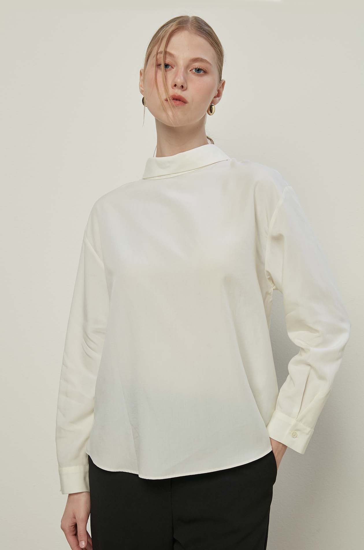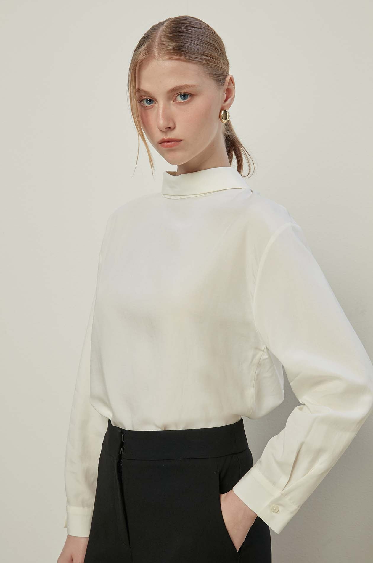 - Long sleeves with buttoned cuff