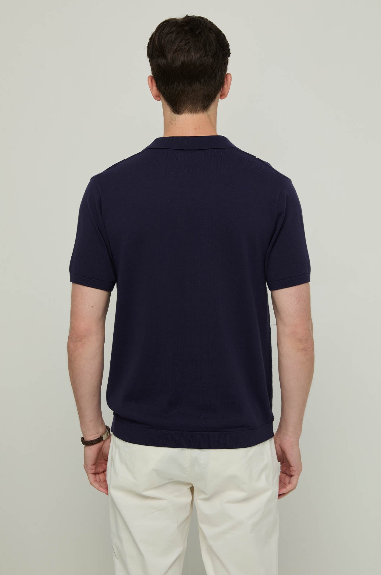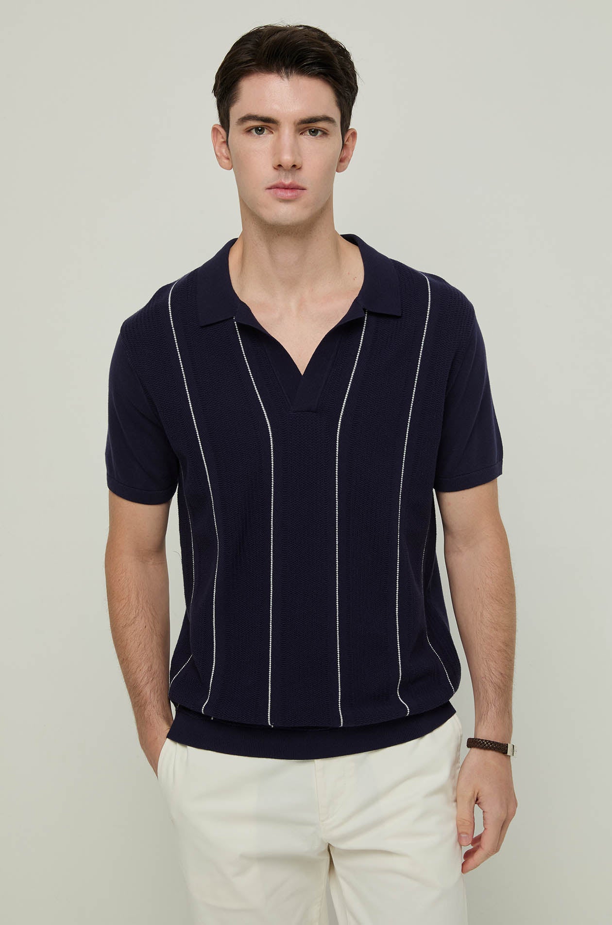 - V-neck open polo collar