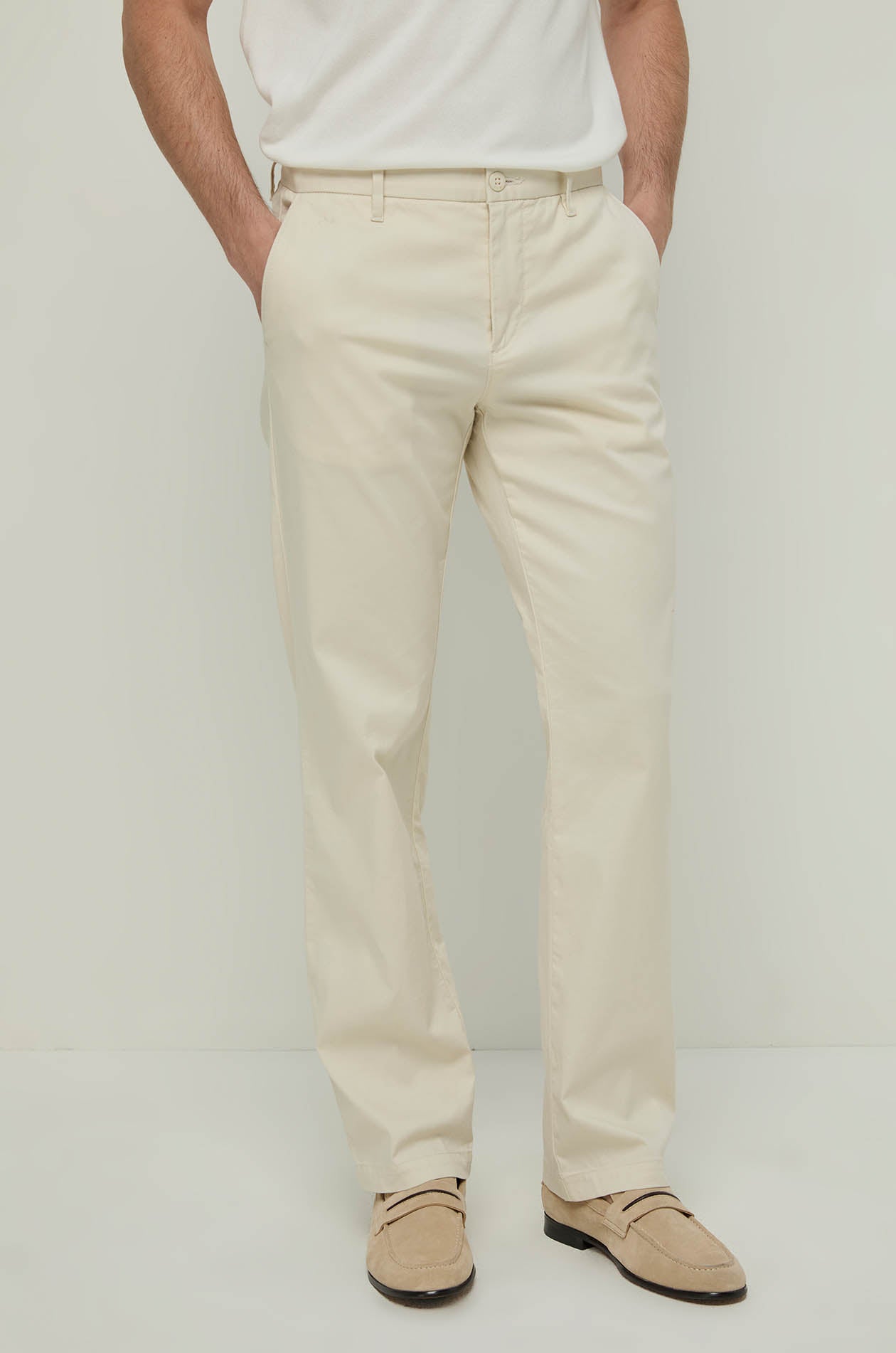 These straight-leg chino pants feature an elegant, simple design, making them easy to wear every day. The stretch fabric provides exceptional comfort and all-day freedom of movement. An essential wardrobe staple for creating a look that is simple yet stylish.