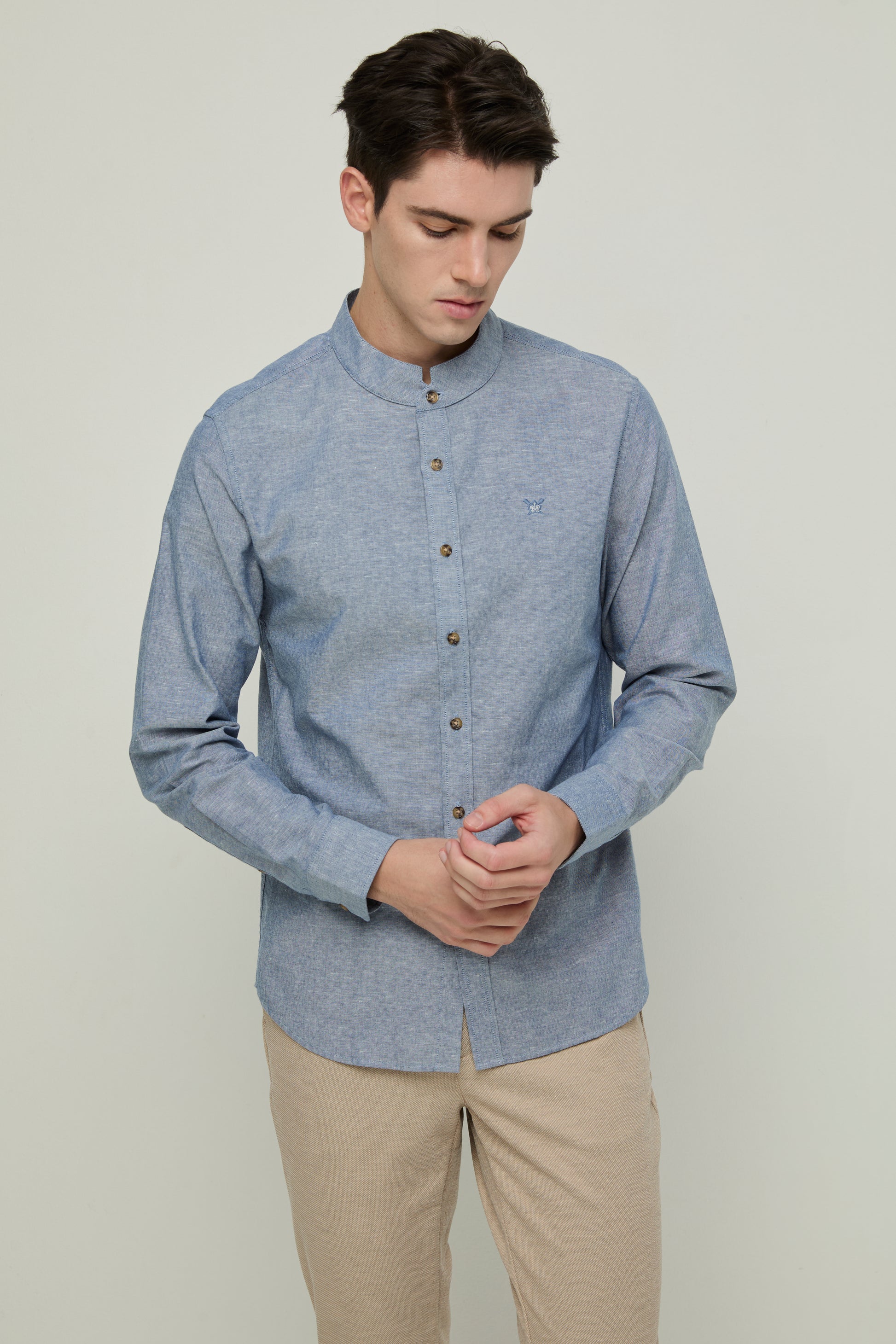 NAVY LONG-SLEEVE CHAMBRAY SHIRT
