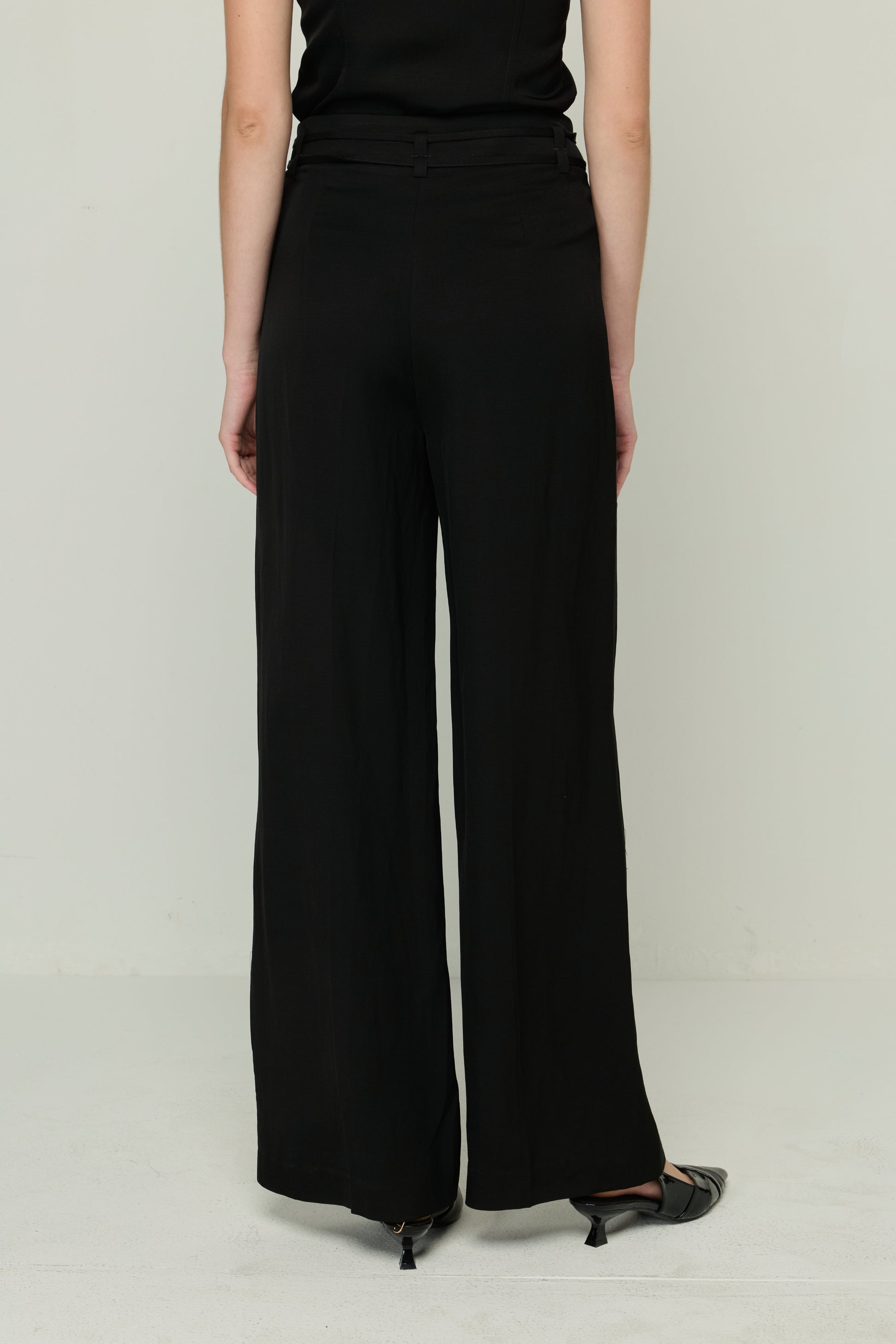 BELT PLEATED WIDE LEG LONG PANTS