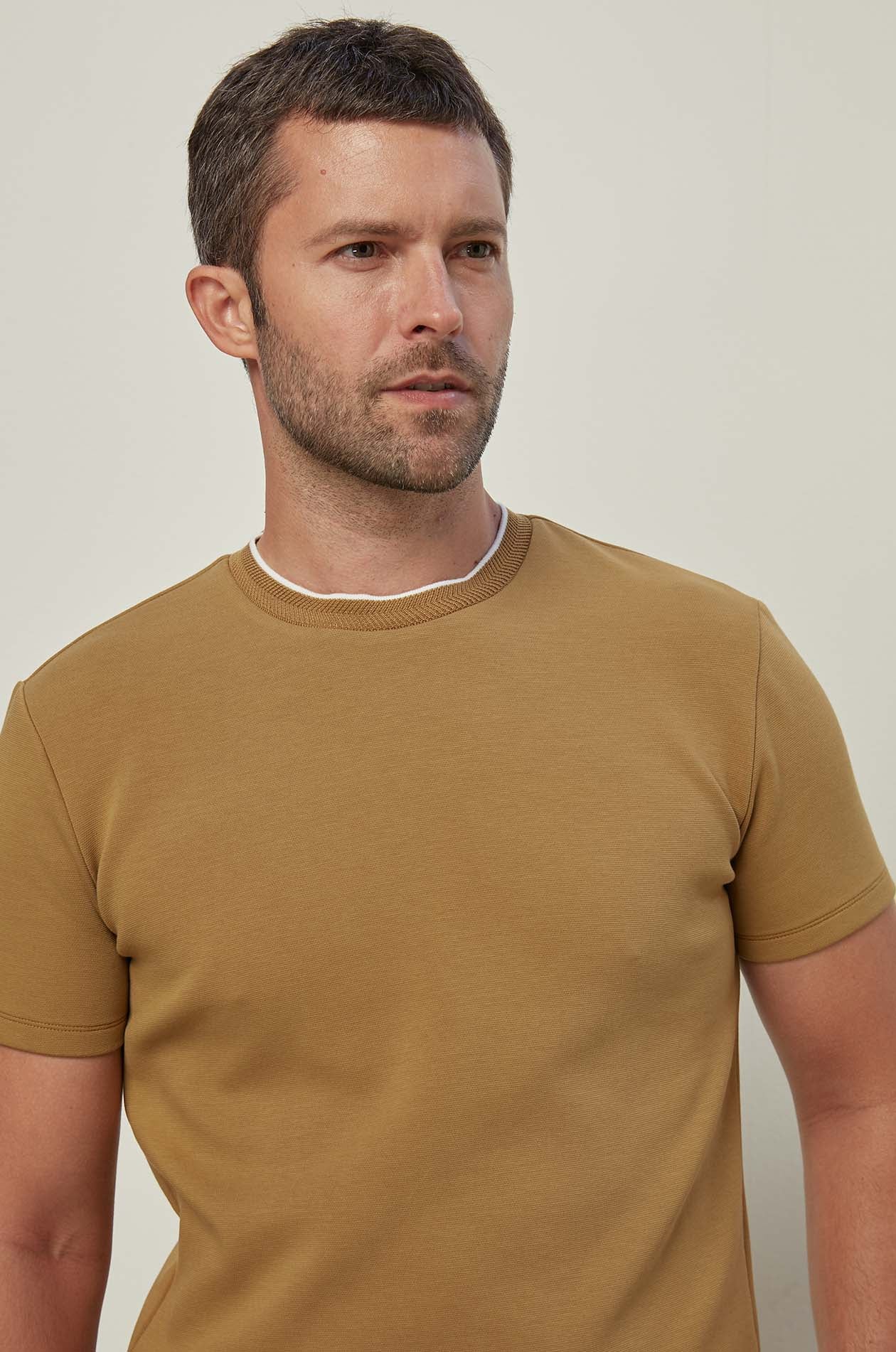 HERRINGBONE TRIM JERSEY TEE