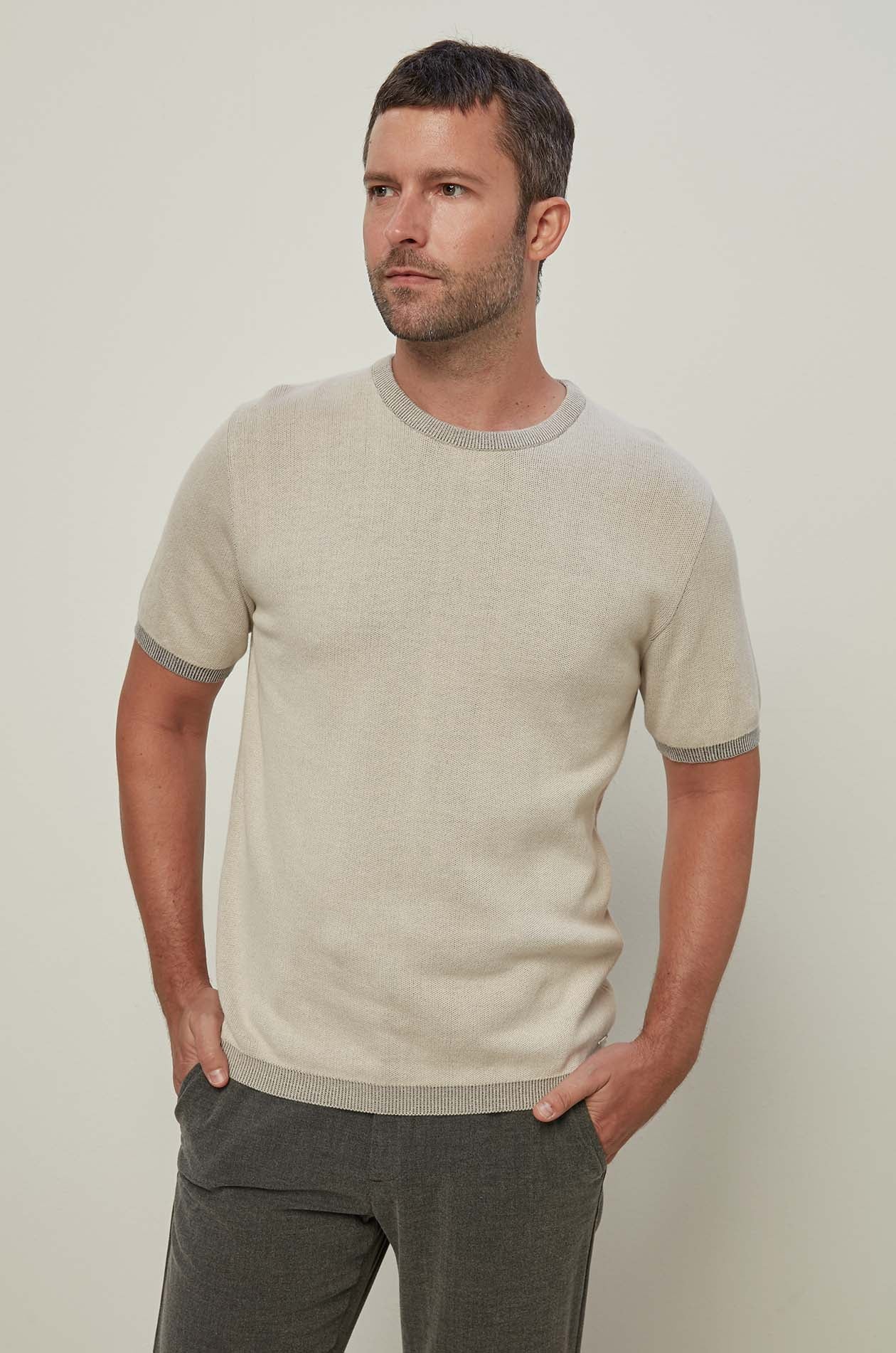 TWO COLOR RIBBED TRIM KNITTED TEE