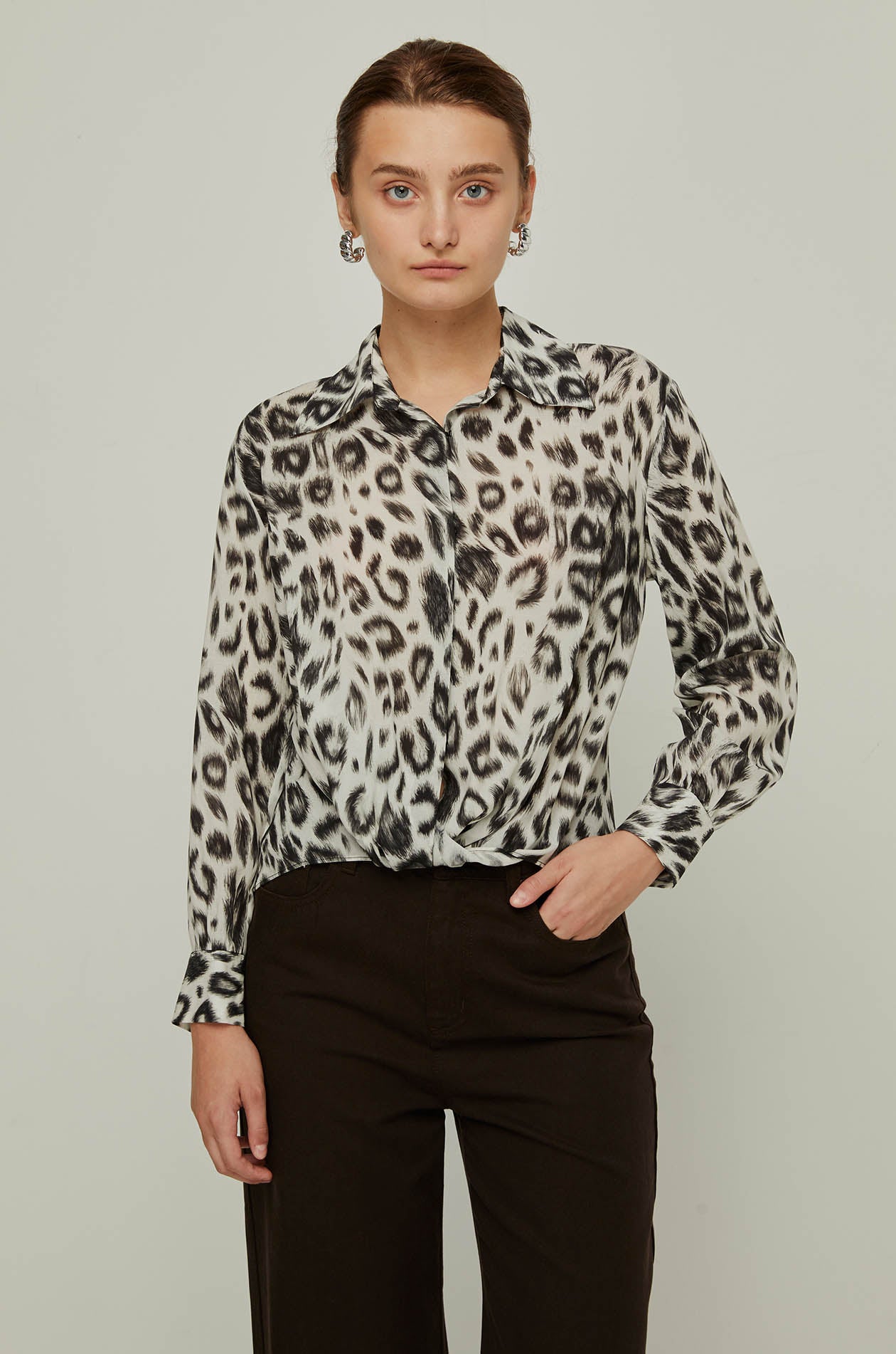 LEOPARD PRINTED TWISTED HEM BLOUSE